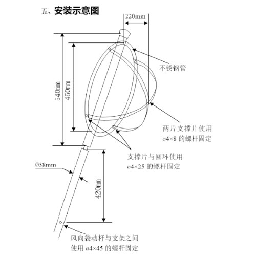 · 不銹鋼風(fēng)桿:高度2000mm,直徑38mm。